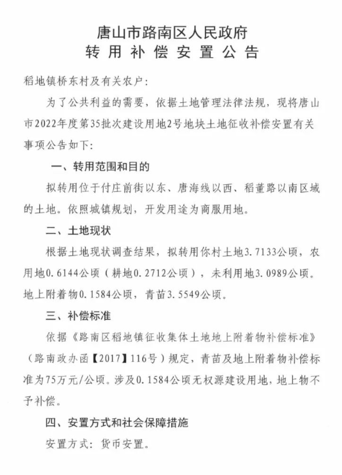 1、转用范围:位于付庄前街以东、唐海线以西、稻董路以南区域的土地