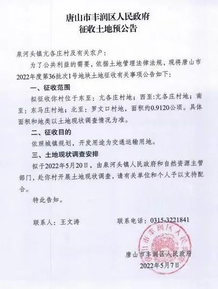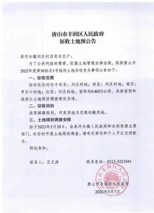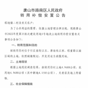 近日,路南区人民政府发布多则转用补偿安置公告和征地补偿安置公告,丰润区人民政府发布多则征收土地预公告。河北省招标投标公共服务平台发布多则招标公告,涉及丰南区老旧小区改造。详情如下↓↓↓