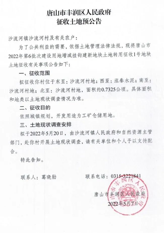 1、征收范围:位于东至:沙流河村地;西至:泓泰水泥;南至:沙流河村地;北至:沙流河村地