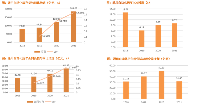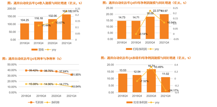 收入利润方面,2021Q4通用自动化板块收入162.31亿元,同比+25.19%;2021Q4归母净利润19.97亿元,同比+235.18%; 2021Q4扣非归母净利润11.02亿元,同比-34.19%;
