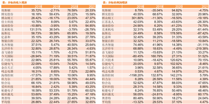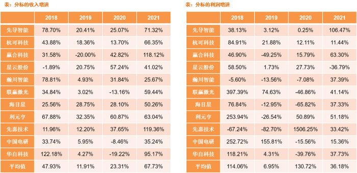 利润增速:行业平均增速为4.47%,其中瑞凌股份、汇川技术、锐科激光增速较快。