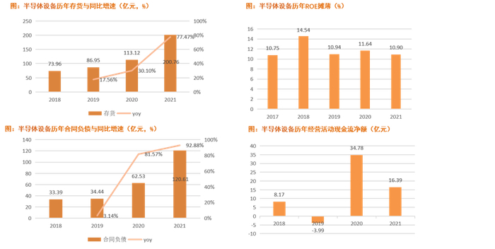 21年全年,从存货和预收账款等前瞻性指标来看,行业整体表现优秀。期末存货值达196.70亿元,yoy+129.36%,预收账款(合同负债)期末值为111.99亿元,yoy+113.30%,均出现大幅增长。