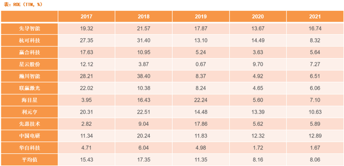 净利率:21行业平均水平为14.80%,其中亿嘉和、柏楚电子、奥普特明显高于行业平均水平。