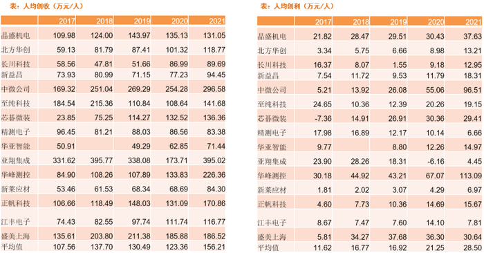人均创利:21年行业均值为18.40万元,表现优秀的为亿嘉和与柏楚电子。