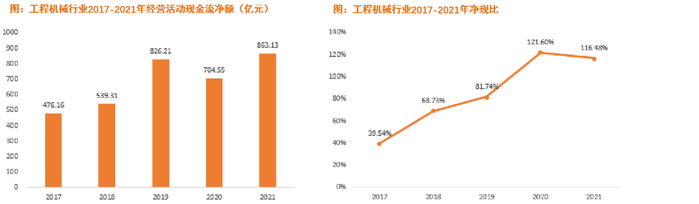 2021年合计经营性现金流净额为863.13亿元,占同期收入的比例为8.74%,较2020年的704.55亿元相比有大幅改善;净现比为116.48%,较2019年上升34.74pct,同比小幅下降5.12pct。