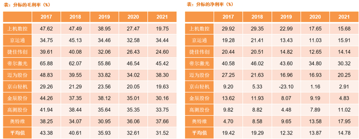 净利率:21行业平均水平为14.78%,其中帝尔激光明显高于行业平均水平,达到30.32%