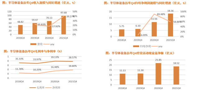 21年四季度,营收和归母净利润分别同比增长85.94%、128.16%,高于全年增速;毛利率同比下降3.19pct,但净利率同比提升1.82pct;经营活动现金流量净额有所下降。