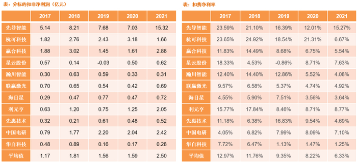 扣非净利润:21年行业平均值为2.50亿元,11家公司中扣非净利润1亿元以下的有6家,先导智能为15.32亿元,远超行业水平。