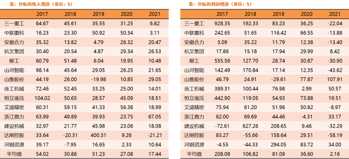 利润增速:行业平均增速为2.16%,其中山推股份、徐工机械、浙江鼎力、河钢资源、恒立液压在行业下行周期利润增速远高于行业平均水平。