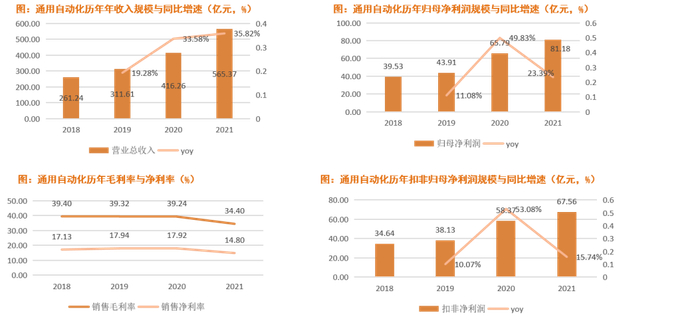 收入利润方面,2021年通用自动化板块收入565.37亿元,同比+35.82%;2021年归母净利润81.18亿元,同比+23.39%; 2021年扣非归母净利润67.56亿元,同比+15.74%;