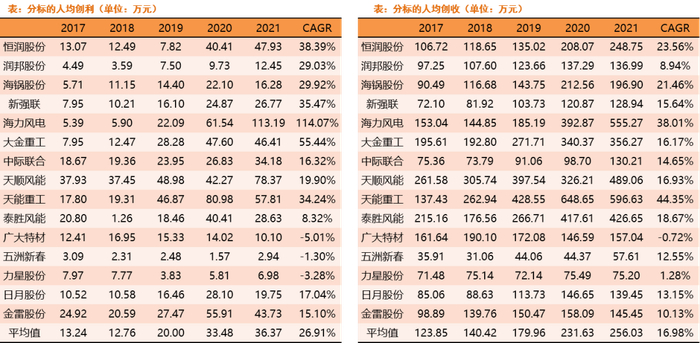 人均创收:21年行业均值为136.74万元,京运通、上机数控、捷伟佳创、帝尔激光高于行业平均水平。