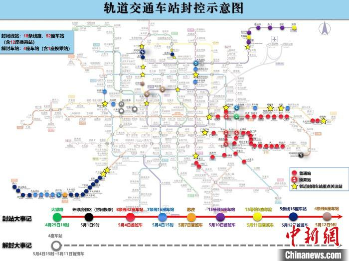 中新网北京5月12日电 (记者 杜燕)根据北京疫情防控需要,自2022年5月12日9时起,2号线和19号线积水潭站、13号线大钟寺站、2号线和4号线及13号线西直门站采取封站措施。截至目前,北京轨道交通封闭车站涉及18条线路、92座车站(含12座换乘站)。