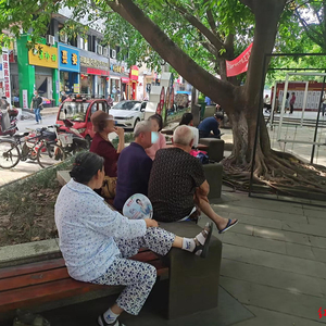 公园里几个老人聚在一起,互相了解案情。