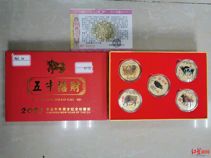 初期,大家买的产品都不多。马明秀记得,去领面条的时候,业务员并没有给他们介绍产品,而是告诉他们,家里有古钱币等收藏品,可以拿去免费鉴定。她大概是2020年4月第一次去这家公司的。直到6月份,才买了第一套纪念币,价值16800元。