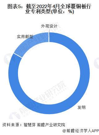 在专利类型方面,目前全球覆铜板专利中,超过90%为发明专利,占全球覆铜板专利数量最多。其余部分为实用新型覆铜板专利和外观设计专利,其占比分别为6.57%和0.27%。