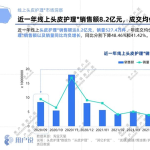根据用户说,2020年10月至2021年09月淘宝天猫线上近一年头皮护理市场规模为8.2亿元,销量527.4万件,与上年同期相比,2021年9月头皮护理销售额和销量同比增长分别为负48.46%和负41.42%,9月业绩同比缩水将近一半。