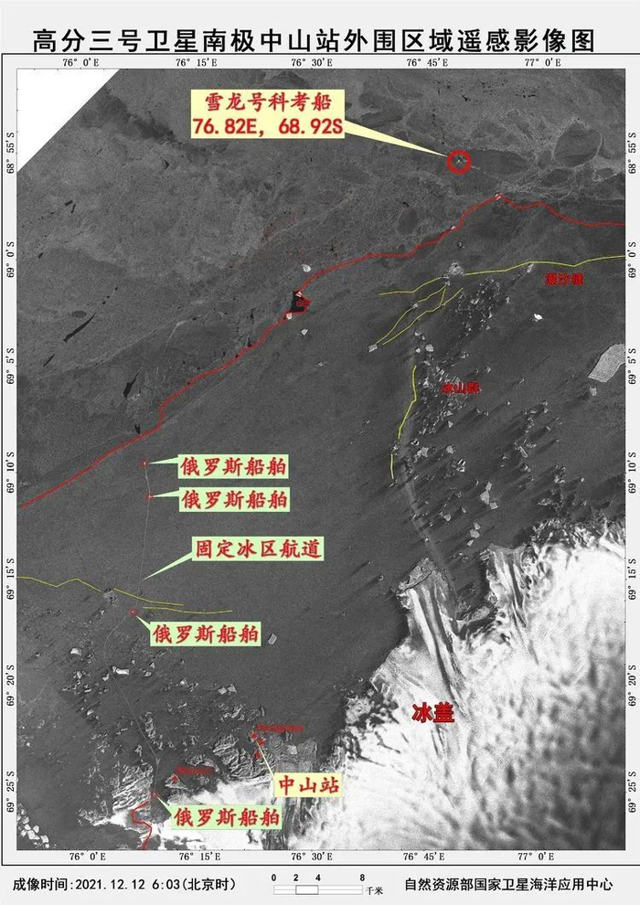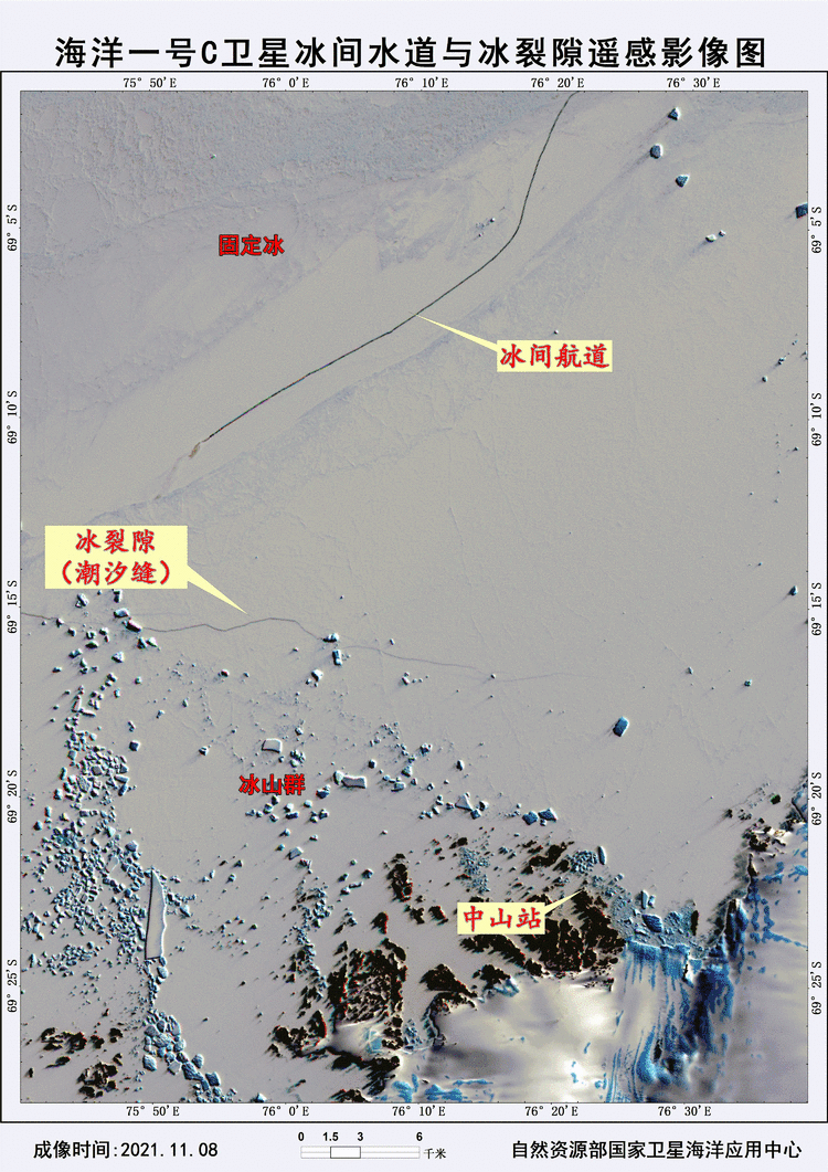 利用“雪龙”号船载遥感接收系统实时接收处理HY一1C/1D卫星、HY一2卫星以及GF一3卫星数据并制作专题图,为拓展冰上丝路和雪龙探极提供了保障服务。