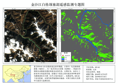 针对金沙江“11.03”山体滑坡堰塞湖应急事件,中心当时利用刚发射的海洋水色卫星HY一1C卫星海岸带成像仪(CZI)数据开展连续应急监测,从2018年11月1日至11月23日,共获取堰塞湖区域HY一1C/CZI数据20余景(其位置正好相邻轨道都覆盖),制作遥感监测影像图10期。数据通过FTP及时提供给应急管理部国家减灾中心,为金沙江“11.03”山体滑坡堰塞湖前线联合指挥提供了客观准确的决策辅助信息。