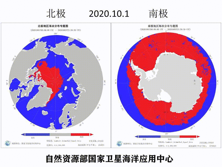 海洋二号卫星配置的微波散射计、雷达高度计和微波扫描辐射计,可以提供极地区域海洋动力环境信息及海冰密集度、覆盖区域、类型等信息,研发了基于自主海洋卫星微波辐射计亮温北极海冰密集度反演算法,建立了极区海冰密集度产品制作系统,实现了业务化监测。中法海洋卫星配置的微波散射计和海浪波谱仪,可以提供南北极海冰信息,空间分辨率由25千米提升到12.5千米,对极地的覆盖可以达到3天一次。