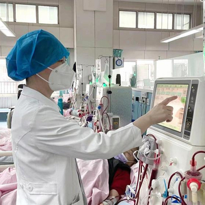 血液净化中心的何雯雯在帮助患者透析。受访者 图