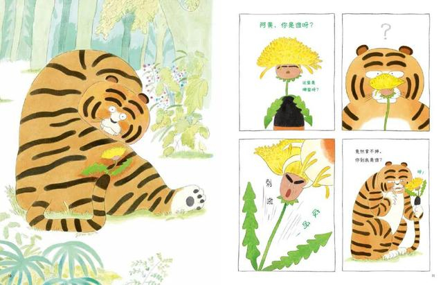 两位主角是老虎阿黄和尾巴花。阿黄总是吓唬森林里的小动物,大家都不太喜欢他。但有一天阿黄的尾巴上长了一朵黄色的小花,而这朵小花总是萌萌的,对所有动物都很友好。渐渐地,在尾巴花的督促下,有点冷漠又爱捉弄人的阿黄开始帮助小动物,逐渐被大家所接受,阿黄也和尾巴花成为最好的朋友,但一次散步中,它们掉进了陷阱……