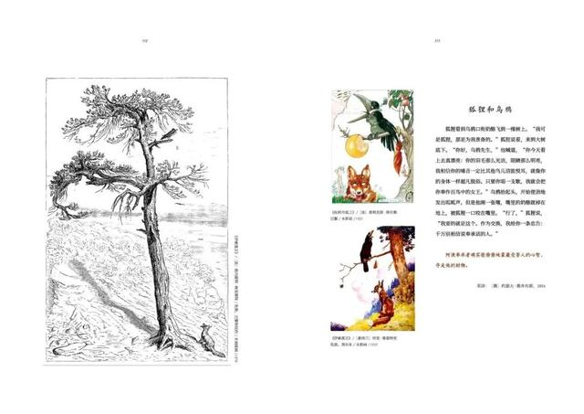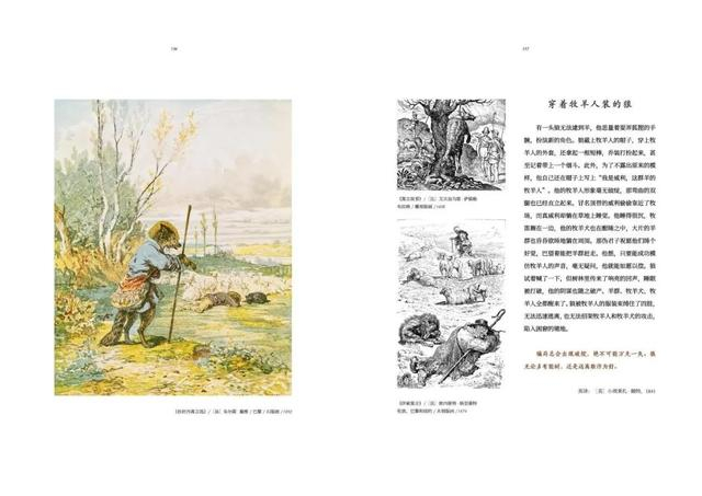 这本书从《伊索寓言》中挑选了100个故事,为每个故事配上了3-5幅涵盖15世纪到20世纪历史版本中的插画,共收录了318幅。这些插画出自全球53位插画家之手,包括现代图画书之父蓝道夫·凯迪克、法国插画之神古斯塔夫·多雷、绘本鼻祖沃尔特·克兰、插画黄金时代领军者亚瑟·拉克汉姆等,从每个故事的插画和版本信息中都可以看到不同时代的插画家对故事的理解和不同的插画艺术风格。
