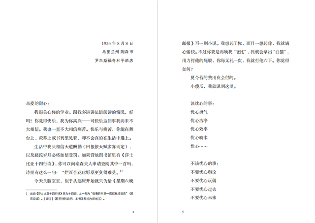菲茨杰拉德把他的才华挥洒在书信里,讲到如何写作,讲到在大学里选课,讲到要结交一个靠谱的男人,讲到“十五岁到十八岁,你所做的每件事都会定下你一生的基调”,分析自己和妻子的缺点,多次告诉女儿你不要遗传我们。他的愁肠百结便是对女儿的性格了如指掌,从自己的一生便看透了女儿的一生。这本书的附录里简单介绍了斯科蒂后来的人生,看起来没有菲茨杰拉德忧虑的那么糟糕,但也并非一帆风顺。