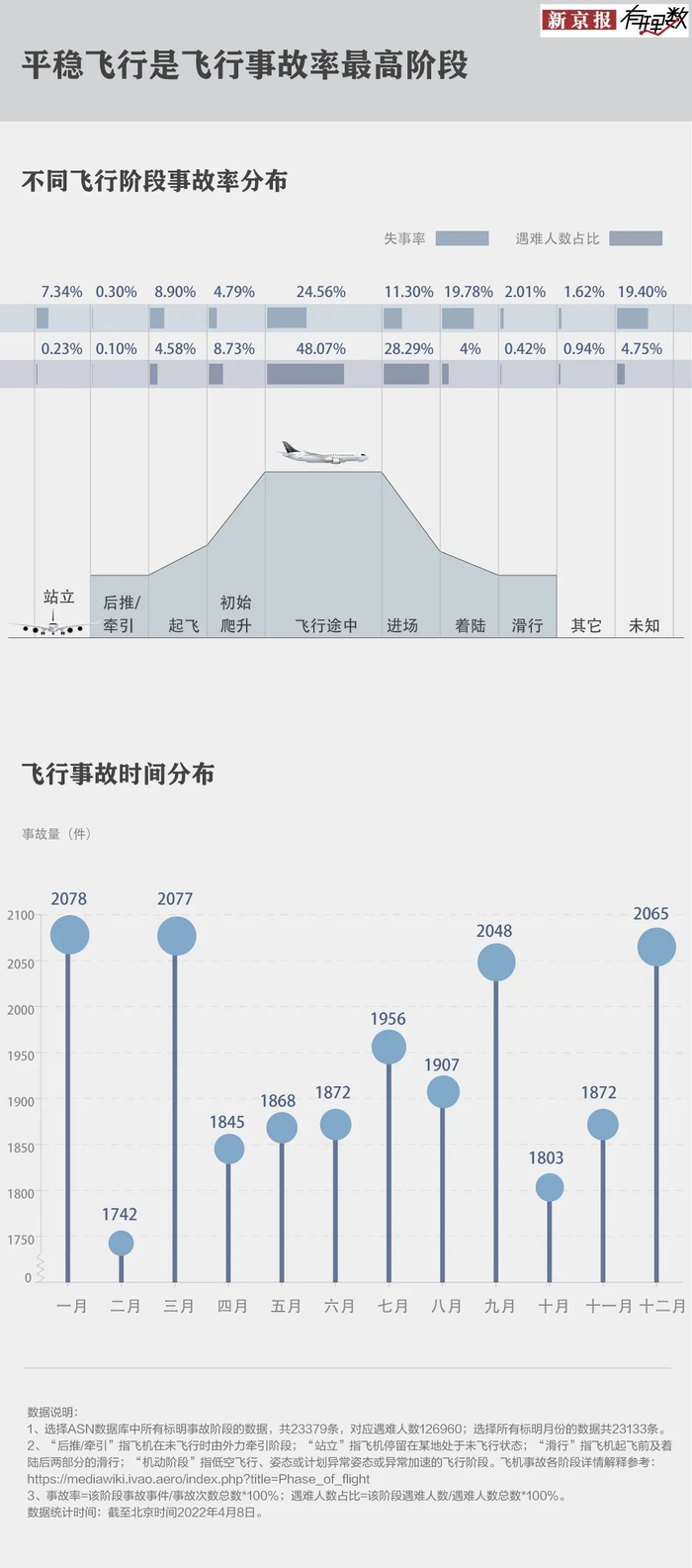 不同于人们的刻板印象,从数据来看,飞机平飞阶段比起落时发生的事故更多。