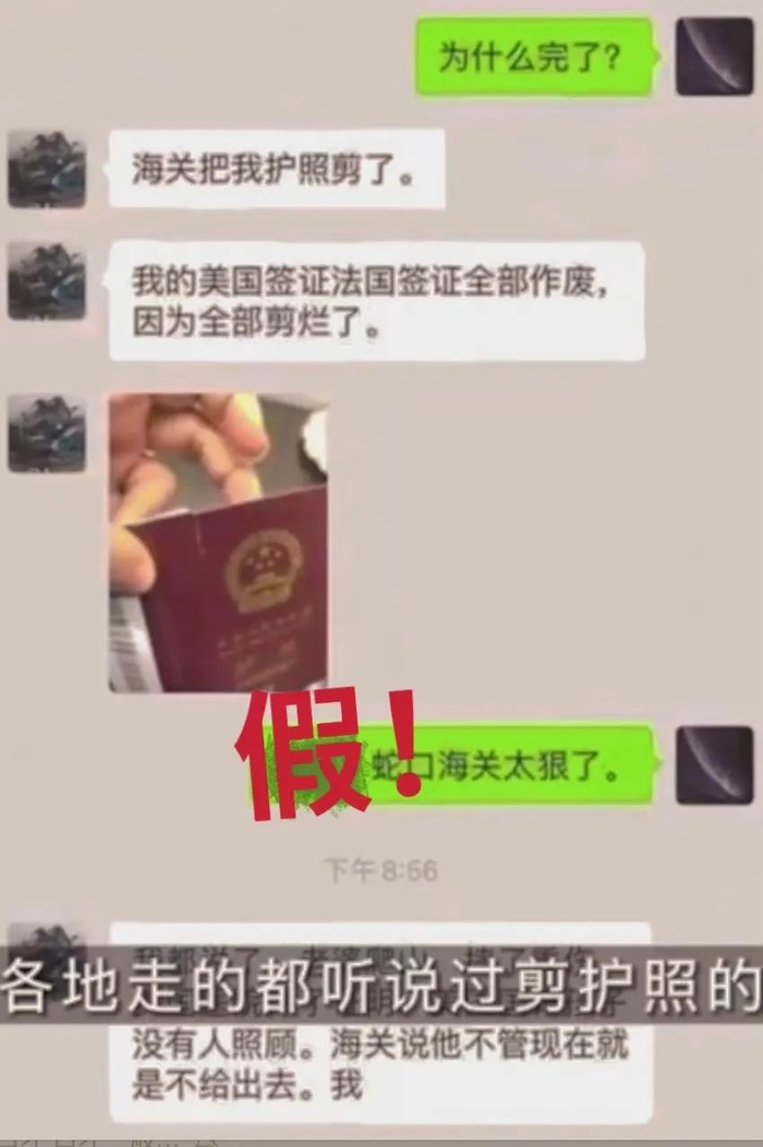 近日,有所谓“网友爆料”称,自己在出境时发现,有中国公民在机场边检时被剪掉护照、扣留或者剪掉所持“绿卡”,不允许出入境。
