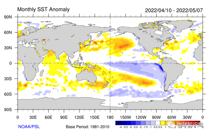 4月至5月初,太平洋中东部区域海水变冷
