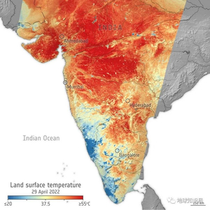 然而就在印度发布这份报告几周后,根据美国航空航天局(NASA)地球观测站报道,2022年4月中下旬爆发了更强烈的热浪,使印度东部、中部和西北部的气温比正常气候水平高出4.5至8.5°C。