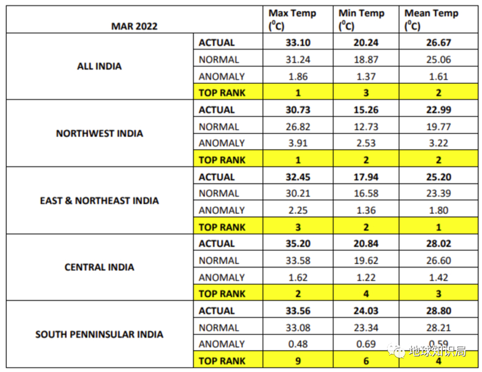 3月印度印度全境及各区域温度▼
