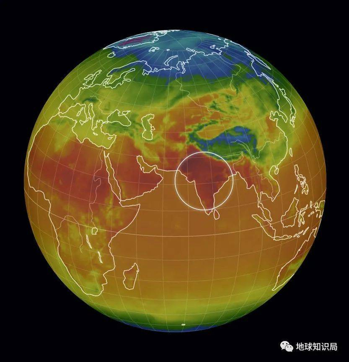 然而,这样的西部扰动系统并非固定不动。在南亚季风未开始前和季风结束后,副热带急流的纬度位置一般会有5~10度的波动。今年的副热带急流异常北伸,在印度次大陆上空形成了一个异常强烈的高压脊区,相对稳定的热穹顶使得炎热干燥的气团长期停滞在南亚大陆。