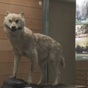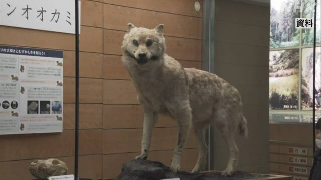 博物馆中的日本狼标本。 图源:NHK报道截图