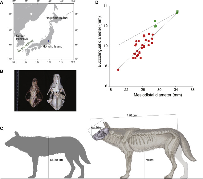 更新世狼和日本狼化石标本的发掘现场和形态对比。 图源:Current Biology