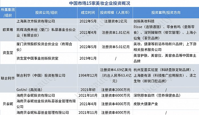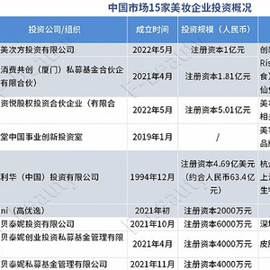 中国市场15家美妆企业投资概况