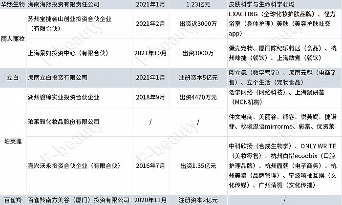 更正:EXACTING、怪力浴室两笔投资乃由丽人丽妆旗下自有CVC“上海丽人丽妆企业管理有限公司”主导,文中表格相关信息有误,特此更正。