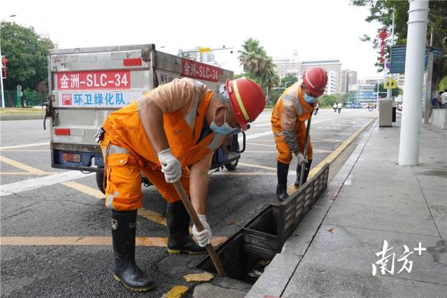 5月12日上午11时许,记者来到虎门镇中心城区多条重要道路、商业街等看到,虽然下着大雨,但虎门镇内易积水点和易涝点却并没有出现积水情况,车辆能正常通行。虎门城管分局工作人员告诉记者,雨水篦作为城市道路排水系统的重要设施,其畅通与否直接决定城市道路的排水能力。“如果不及时清掏,就容易导致管道堵塞,降雨时容易造成路面积水,危及路面车辆及行人安全。”