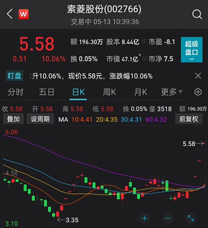 5月11日“摘帽”的索菱股份,更是走出连续3个涨停板。
