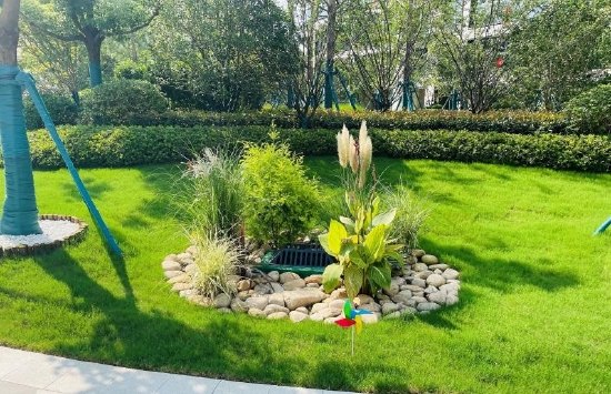 美置服务把海绵城市的理念引入社区管理,通过透水铺装、绿带种植、雨水花园和自洁水溪,在小区内部形成生态自循环,实现“海绵绿岛”、“海绵小区”。这样做的目的在于,社区遇到下雨天可避免积水的困扰,面对天气变化时具有良好的“弹性”,海绵社区下雨时吸水、蓄水、渗水、净水,需要时将蓄存的水“释放”并加以利用,减少雨水外排量,自然“呼吸”。