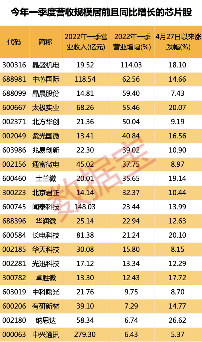 数据宝统计,自4月27日以来,半导体产业底部反弹,中芯国际反弹超14%;同期芯片股至纯科技、江丰电子等股反弹超过25%。