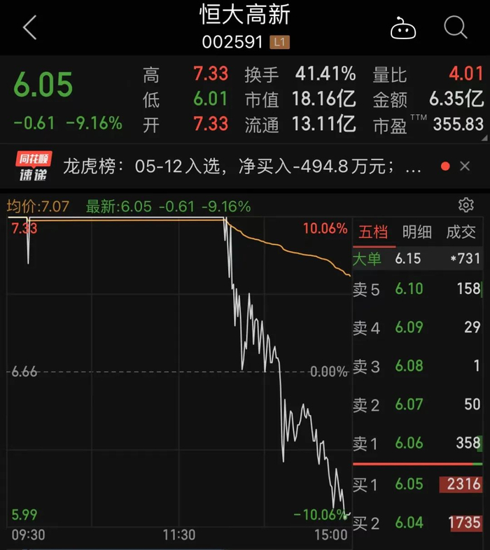 基建股湖南发展5月12日盘中一度跌停,尾盘小幅拉升;恒大系恒大高新炸板,上演天地板,从涨停到暴跌9.16%。