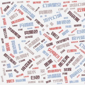 至此,想必我们已经可以取出一个最流行、最大众化、最受厂商欢迎的颜色名字了。综合使用率排名前三的汉字,这种配色名字就叫做“幻境星光”。