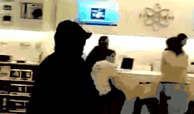 在狭小的房间内,一位男性听着iPod播放的音乐,开始起舞,左右摇摆,最后把它放进自己的上衣口袋里。