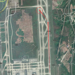 事故飞机路径示意图,圆圈位置为飞机停下的位置