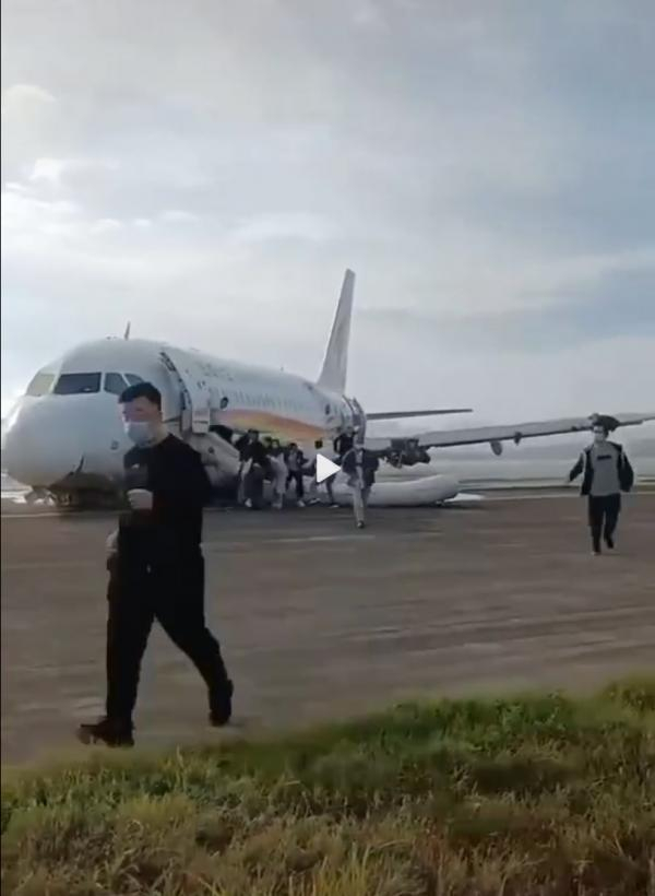 通过旅客在现场拍摄的视频,我们得以了解飞机的撤离情况。在飞机冲出跑道停下后,机上乘务员立即组织了人员撤离。现场视频显示,最先开启的紧急疏散门是左前方舱门,即平时上下客的舱门,紧接着尾部左侧舱门也打开应急滑梯释放。在左前方应急滑梯疏散时飞机左侧燃起大火,随后停止前方疏散,转为机尾疏散。