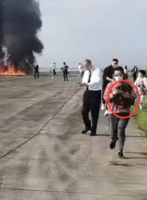 2020年5月5日莫斯科机场SSJ100空难中也能看到有旅客紧急疏散时还拿着行李