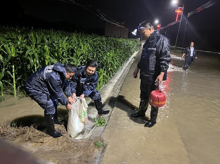 5月12日晚,受持续强降雨影响,博罗县石坝镇石坝村内道路出现积水。镇村组干部迅速组织防汛工作组拉警戒线、清理杂物排水,确保群众生命财产安全。