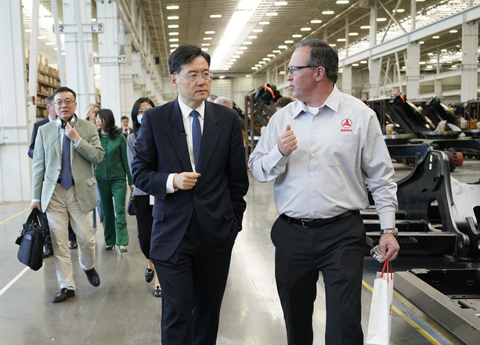 据中国驻美国大使馆网站消息,当地时间5月12日,作为访问美国南部佐治亚州的第一站,驻美大使秦刚来到距该州首府亚特兰大约40分钟车程的费耶特郡桃树市,参访三一重工美国公司总部。