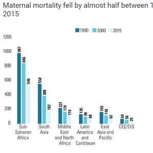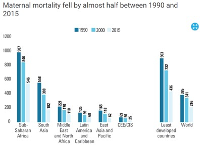 从1990年到2015年,全球孕妇死亡率下降了大约一半,但99%的孕妇死亡都发生在发展中国家。图片来源:联合国儿童基金会